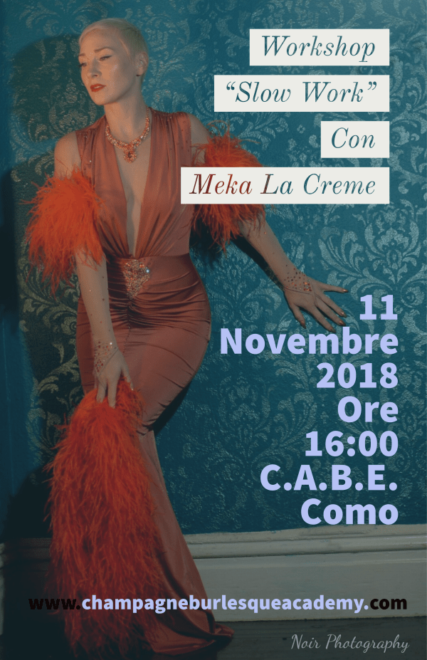 Arriva alla Champagne Academy il workshop burlesque “SLOW WORK” per imparare la sensuale arte del floor work dalla sinuosa Meka La Creme!