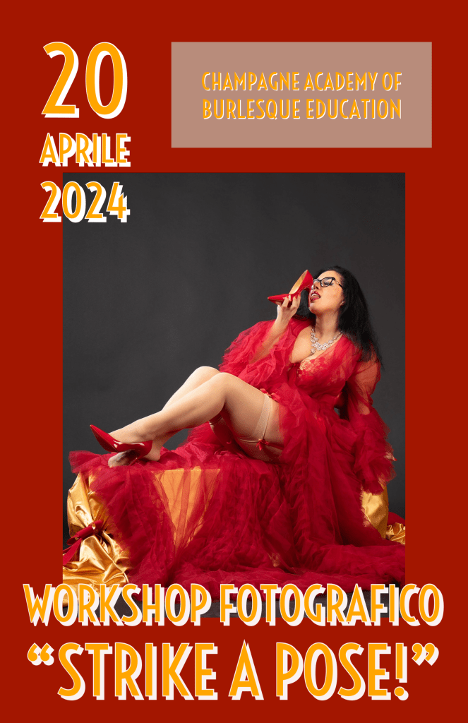 Si tratta classico workshop fotografico in stile burlesque ma questa volta a guidarvi nelle pose sarà Miss Sophie Champagne, per realizzare scatti unici e indimenticabili.