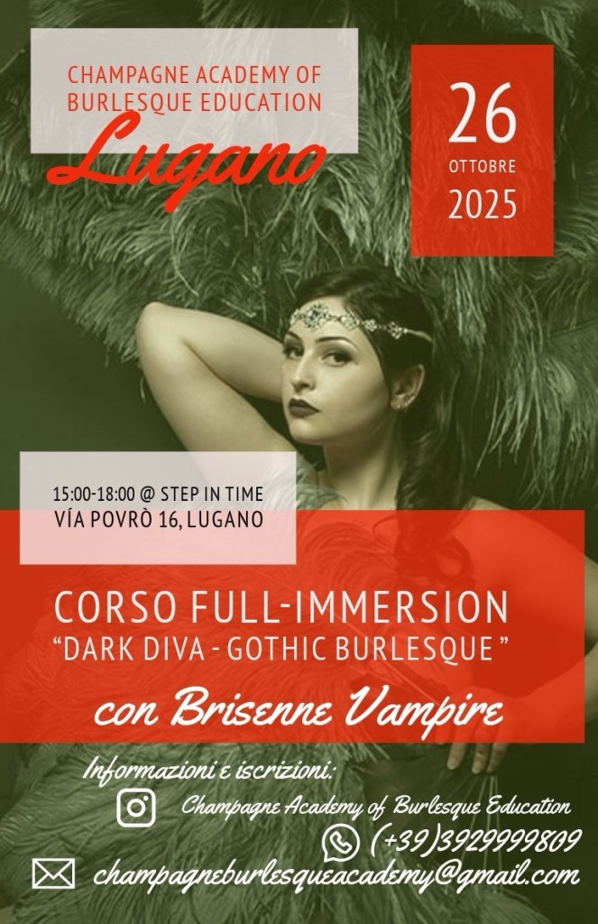 Brisenne Vampire è una performer di fama capace di coniugare glamour e teatralità in ogni passo. Nota per la sua presenza magnetica e l’eleganza ipnotica, Brisenne ha calcato palchi prestigiosi, portando sempre con sé l’arte di una camminata che non passa mai inosservata. Con lei imparerai come trasformare anche il più semplice ingresso in un momento spettacolare, degno delle più grandi showgirl della storia.