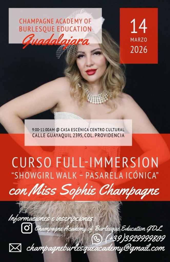 Miss Sophie Champagne es performer y directora de proyección internacional, reconocida por su elegancia magnética y su dominio absoluto del escenario. Su estilo fusiona glamour clásico, precisión técnica y teatralidad refinada, convirtiendo cada paso en una declaración de poder femenino.